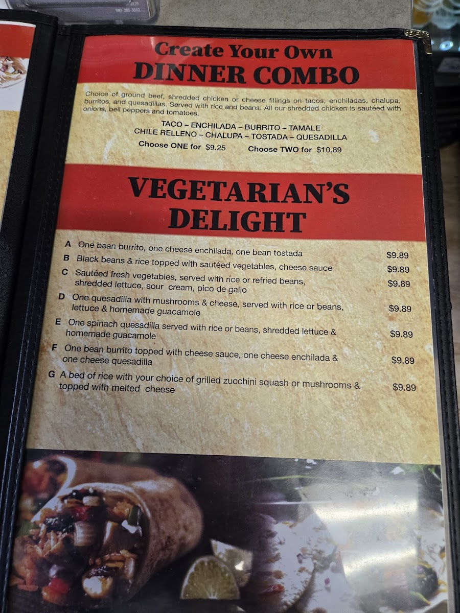 Vegetarians will revel in options like the Vegetarian’s Delight, featuring a bean burrito and cheese enchilada, while families can choose from a diverse Kids Menu that guarantees satisfaction for even the pickiest eaters.